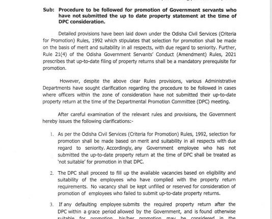 ସମ୍ପତ୍ତି ତାଲିକା ନଦେଲେ ପ୍ରମୋଶନ୍ ନାହିଁ: ସାଧାରଣ ପ୍ରଶାସନ ବିଭାଗ ପକ୍ଷରୁ ଚିଠି ଜାରି